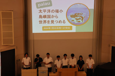 『(キーワード)つながり(説明)屋久島コースでは、ガイドさんや現地の人による案内、つながりによって学びを深めることができ、また、知覧では、戦時中の人々の家族とのつながり、過去と現在のつながりが、私たちの心に訴えかけ、学びのきっかけとなりました。日本一周コースでは、過去の日本と海外の交流やそれによる文化があり、それらが今の日本をつくっているのだと思いました。また、道の途中途中で、地域の方々と接することで、自らつながりをつくり、知らないものに触れることができていました。パラオコースでは、過去においての日本とパラオ、過去と今、今の日本とパラオ、そしてパラオから世界のつながりが未来を変えていくのだと思いました。』